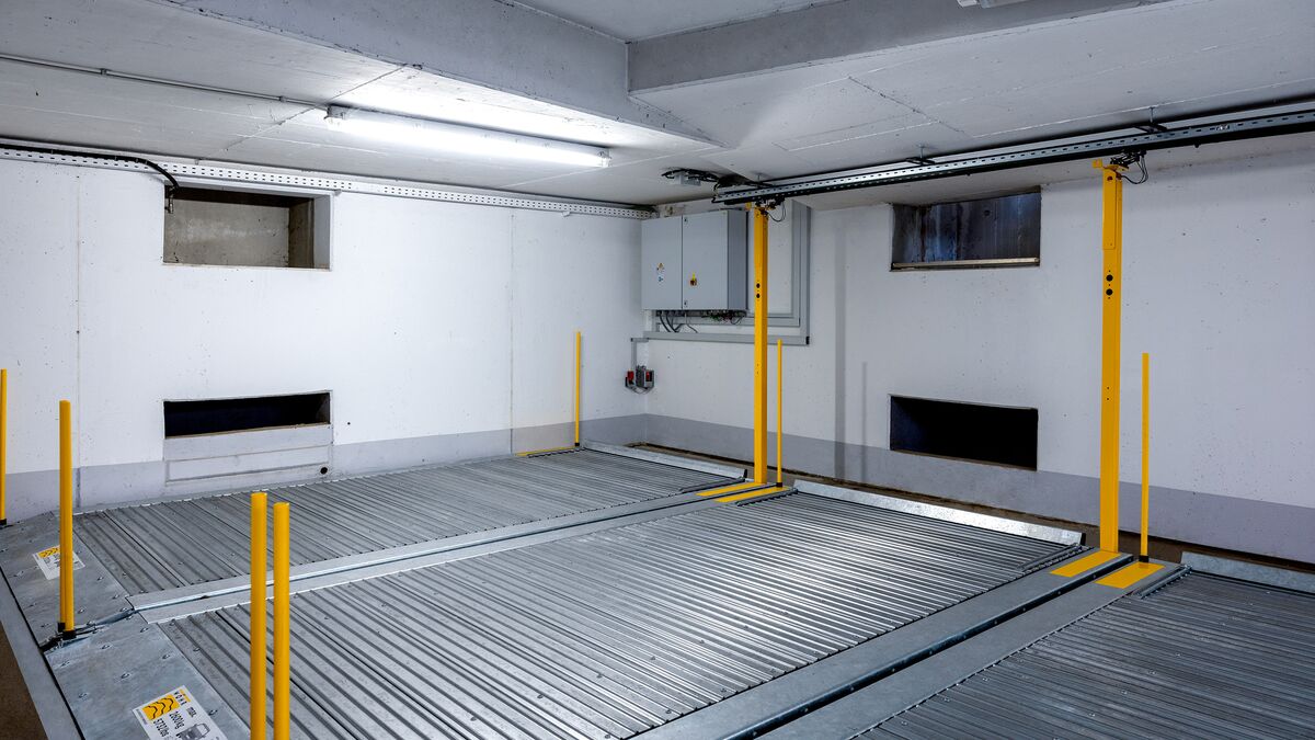 Bočnim pomeranjem parking platforme 601 koristi se svaki deo raspoloživog prostora i obezbeđuje se maksimalna površina za parkiranje.